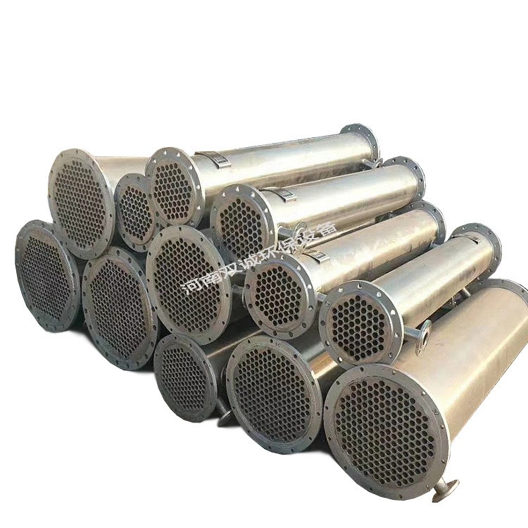 進行熱交換時,冷卻水由頂蓋的連接管進入,在管內流動,這條路徑稱為管程;有害蒸氣在管束與殼體之間的空隙內流動,這條路徑稱為殼程;管束的表面積就是傳熱面積。